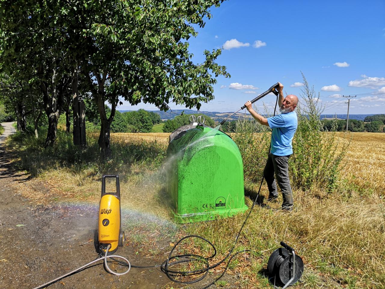 V části obce Čistec bylo kontejnerové stání upraveno, vystavěla se opěrná zídka a položena byla zámková dlažba. Okolo byly vysázeny stálezelené keře a túje, které budou udržované jako živý plot. Nyní místo s kontejnery vedle kapičky vypadá lépe a kontejnery se neboří do bláta. Poděkování opět patří všem dobrovolníkům.